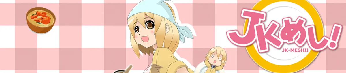 Three high school girls have mastered the art of cooking simple, B-class dishes called JK meshi. The three girls — Reina, Ryouka, and Ruriko — are all classmates in their second year of high school. They often get distracted when studying for tests, and when they do, they cook JK meshi. (Source: ANN)