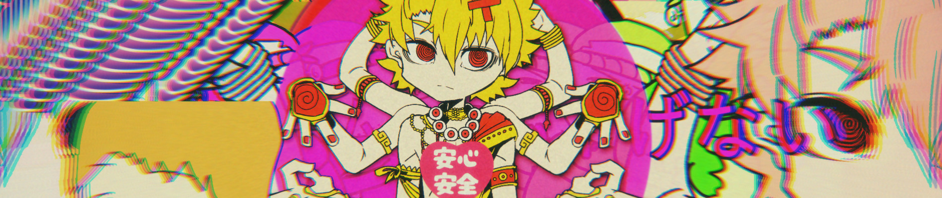Dappou Rock is an original song by Neru. The boy in the video is named Datsu. This song shows how people can become brainwashed and lose all their time surfing the Internet, ignoring the real world outside of the Internet and blindly following anything they are told. The video is composed of short, colorful, and poorly drawn clips of memes, anime shows, news broadcasts, and clickbait. They are interspersed with advertisements for a cure-all "Law-Evading Rock," depicted as a rainbow-colored disk. Datsu, who is entranced by the stream of clips, blindly follows the advertisements. Near the end of the song, Datsu is tapped on the shoulder by the male group featured on TV. The leader inserts a "Law-Evading Rock" disk into Datsu's back. The video then dissolves into a chaotic mix of clips from earlier in the video, with Datsu depicted as having seemingly achieved enlightenment and become a many-armed bodhisattva. (Source: Vocaloid Wiki)